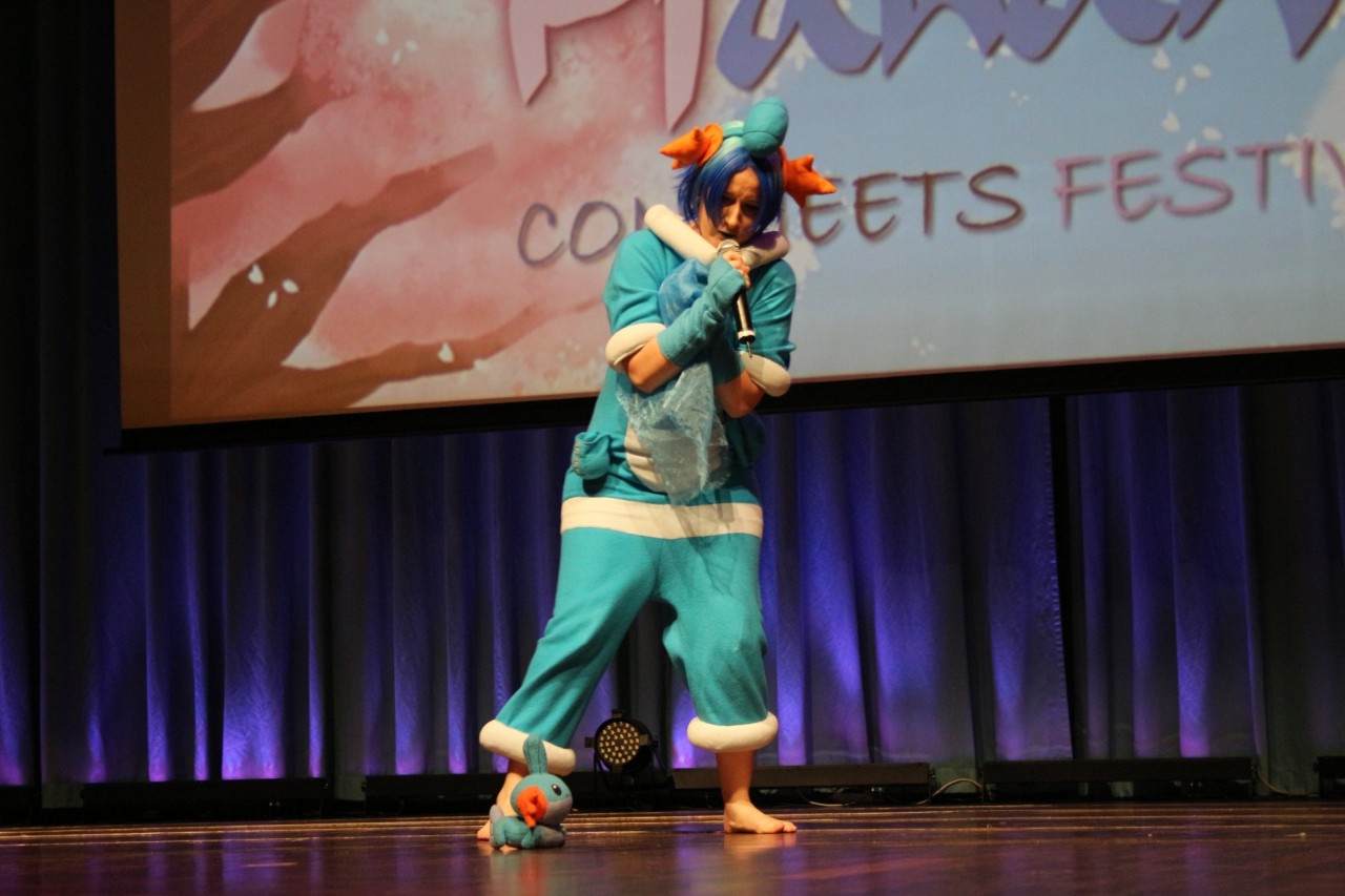Neben dem Vorentscheid der Deutschen Cosplay Meisterschaft gab es einen normalen Cosplay Wettbewerb. Dieser zählte 10 Startnummern und war nicht eingeteilt in Gruppen- oder Einzelcosplay: Die Mischung machts. Einzig, dass es keine zeitliche Begrenzung der Auftritte gibt wollen wir an dieser Stelle bemängeln. Teilweise macht es mehr Sinn, einen Sketch kurz und knapp zu halten anstatt ihn so lang wie möglich auszuschmücken. Außerdem scheinen Cosplay Wettbewerbe auf manchen Conventions wohl teilweise als Eigenwerbung genutzt zu werden. Das kann bei der Anmeldung natürlich niemand wissen – Wir finden es nur allgemein seltsam. Die Jury bestand aus sechs Cosplayern, mit einbegriffen dem Cosplay Ehrengast der Con: Elyon.