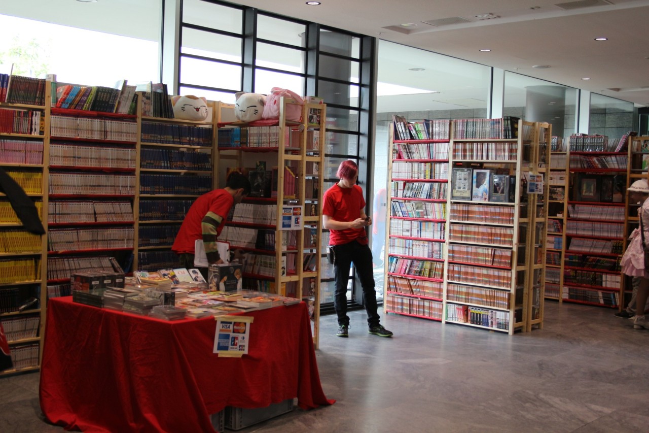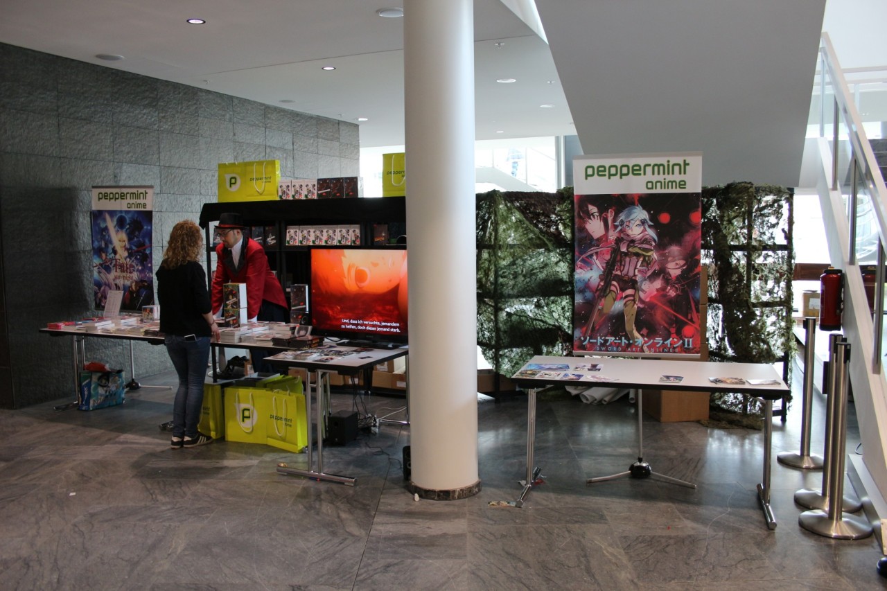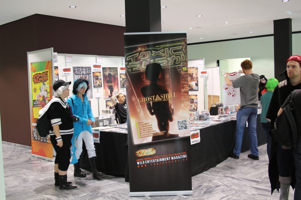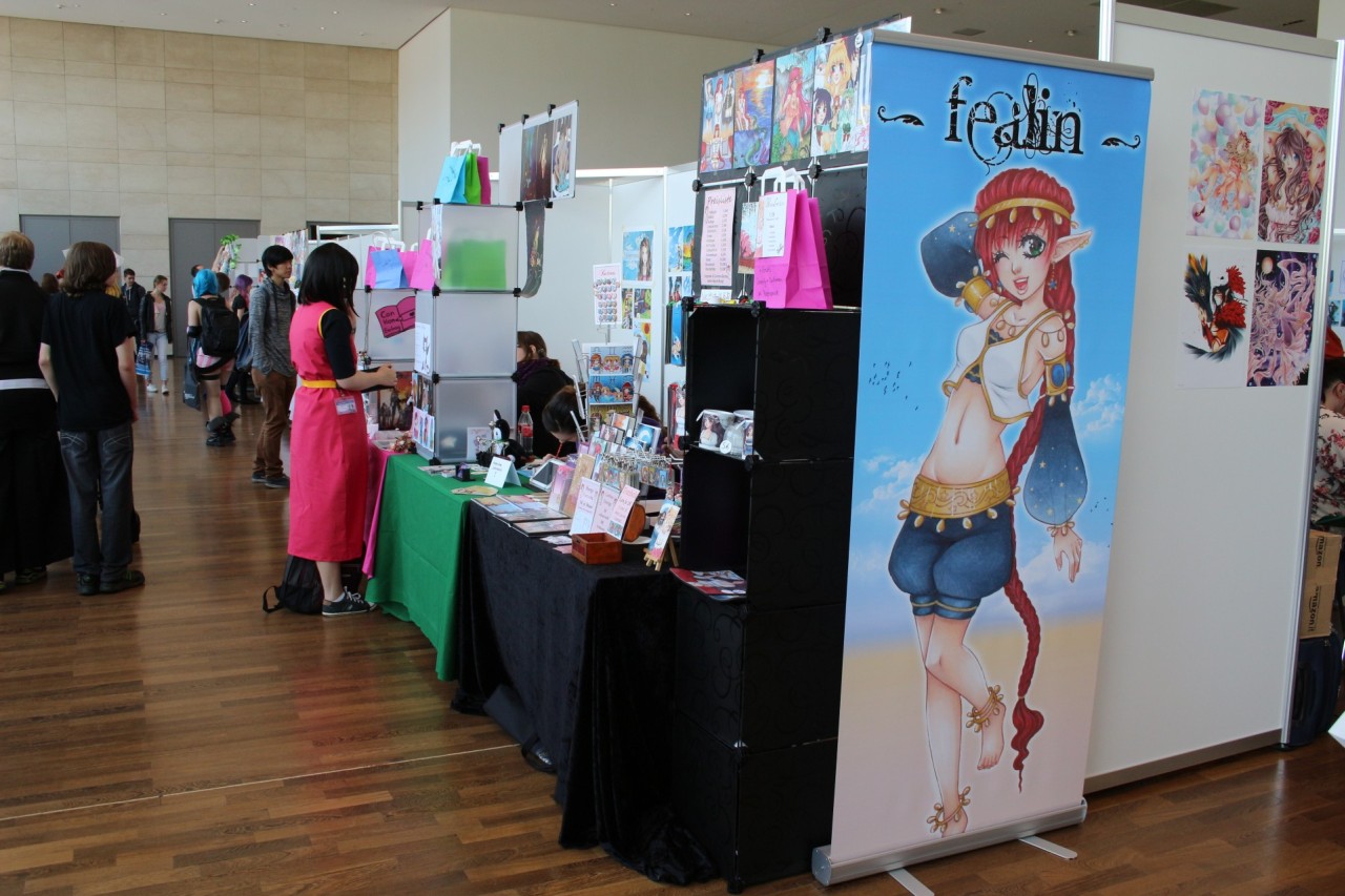 Im ersten Stock ist ebenfalls alles beim Alten: Fanwork Stände, Maid-Cafe, Zugang zum Konzertsaal und auch das Catering der Location. Aber auch ein weiterer Workshopraum und Fanstände sind hier zu finden. Ebenso war der Stand vom Animexx e.V. – Veranstalter der Convention – gut positioniert.