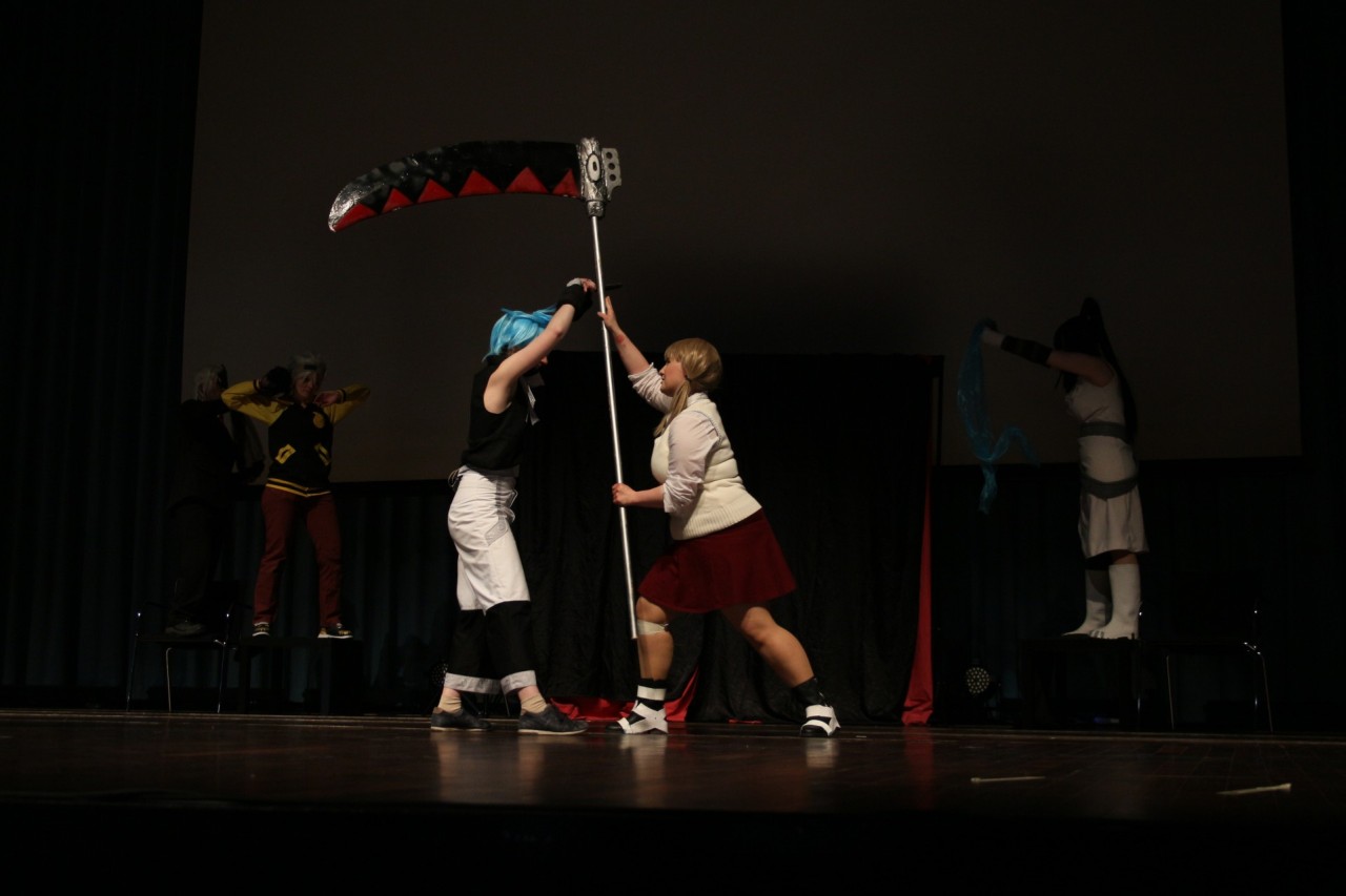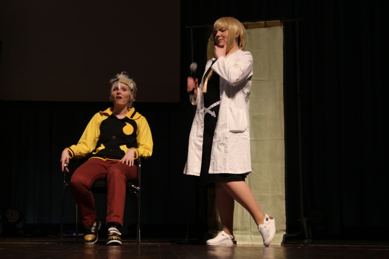 Die Gruppe Imitari haben wir auf der Hanami, genau wie Vapid Superior, zum ersten mal gesehen. Gleich zu Beginn entschuldigte sich die Gruppe, dass die Darstellerin der Protagonistin Maka kurzfristig ausgefallen ist und diese von jemand anderem übernommen wurde. Das selbe galt für einen anderen Charakter. Hut ab für den Mut, dennoch aufzutreten! Das Stück bediente sich am Anime Soul Eater und wie in der Anime Serie fehlte es nicht an Witz und Humor. Zwar waren die Action-Szenen hier und da etwas hakelig, aber das wird an der spontanen Umbesetzung liegen und in keinster Weise negativ kritisiert! Getragen haben das Stück allerdings definitiv zwei starke Darsteller (Stein und Blackstar/Dr. Jekyl). Besonders gemeinsam waren die beiden witzig anzusehen. Wir freuen uns schon, dass Stück entweder mit Originalbesetzung zu sehen oder das neue Stück im nächsten Jahr.